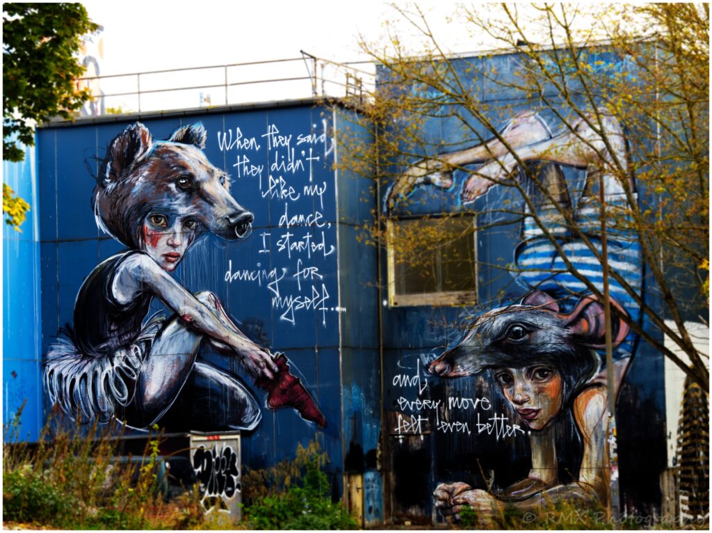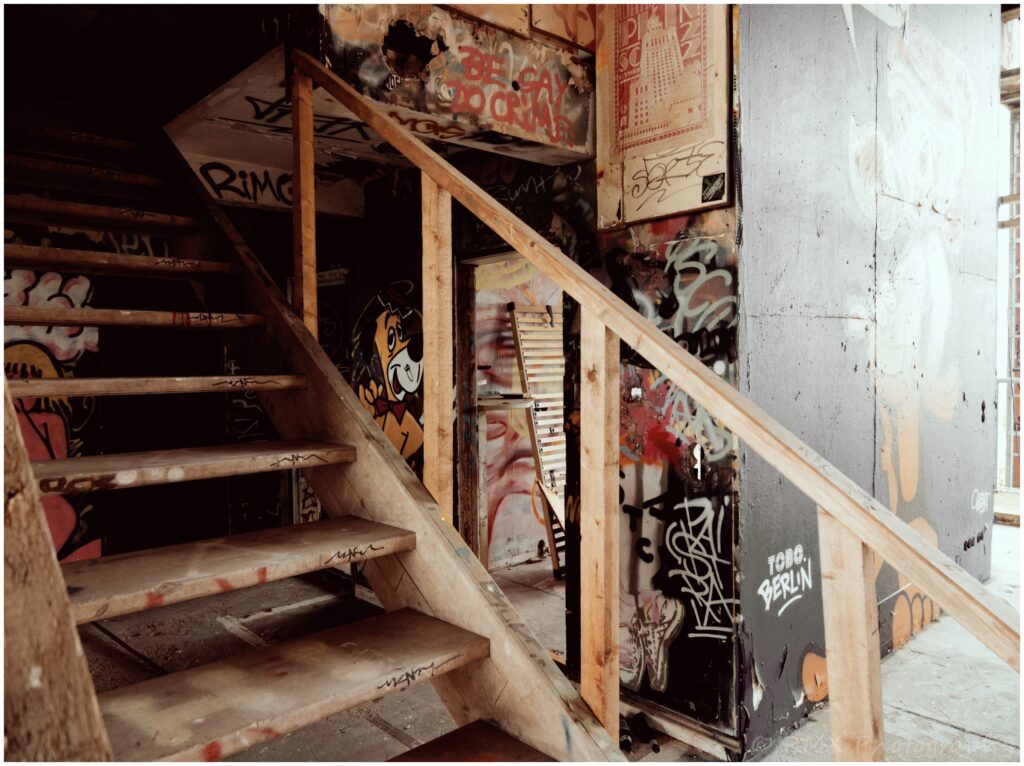 Aber: das Gelände ist heute ein Mekka der Street Art Szene. Internationale Künstler nutzen das vierstöckige Hauptgebäude für großflächige Kunstwerke!